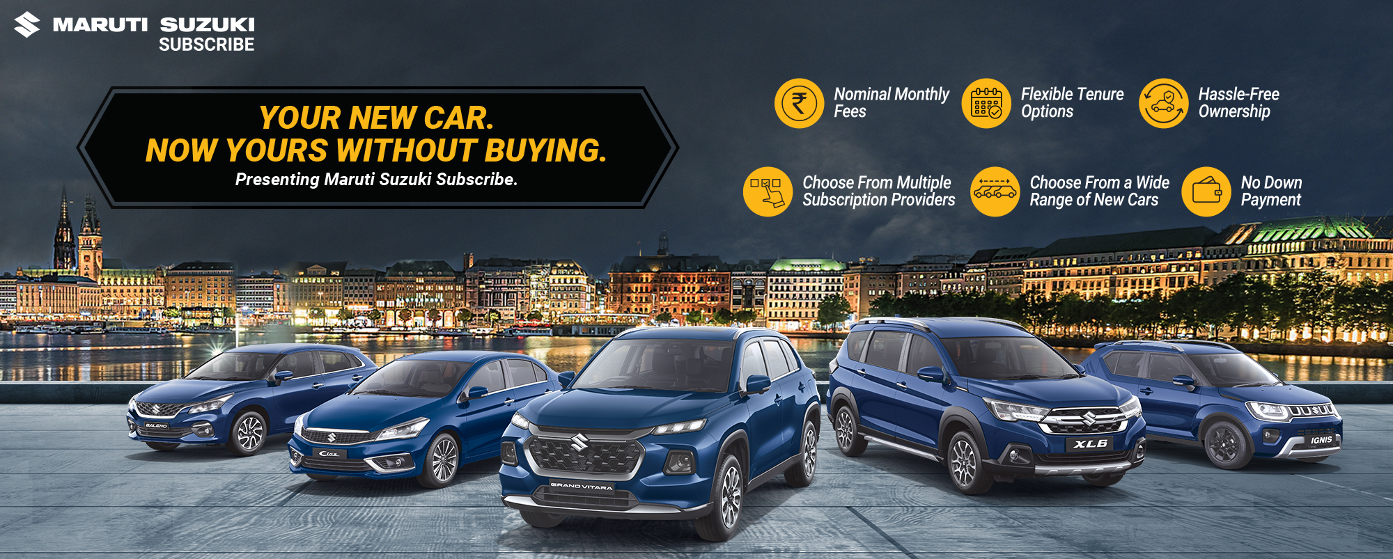 Located in Bengaluru, Bimal offers a plethora of options of Nexa cars for Maruti Suzuki Subscribe. You can choose your desired Maruti Suzuki car and drive it home at nominal monthly fees for a variety of flexible tenure periods. Whether you prefer Hatchback, Sedan, SUV or even MUV you are sure to find it at Bimal, with an easy Maruti Suzuki Subscribe plan.